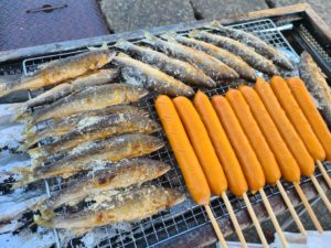 10日の夕方・・・隊員さん達に鮎とフランクフルトを振る舞いました♪